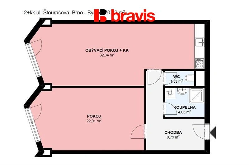 Ve výhradním zastoupení majitele nabízíme k podnájmu byt o velikosti 2+kk na ulici Adamcova, Brno-Bystrc.