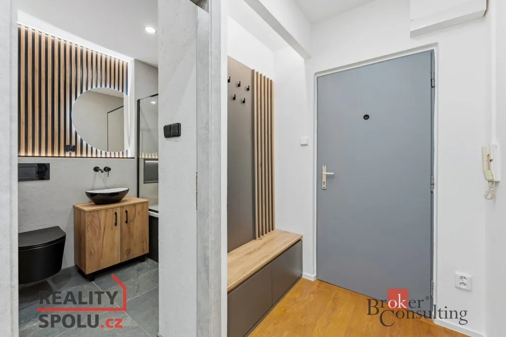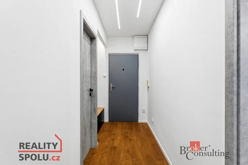Byt prošel kompletní rekonstrukcí – nové rozvody elektřiny a vody (s revizí), podlahy, koupelna, kuchyň s vestavěnými spotřebiči. Dispozice byla upravena tak, aby byt působil vzdušně a moderně.