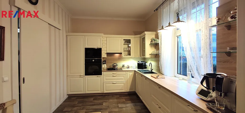 V přízemí je k dispozici prostorná kuchyně, obývací pokoj s kachlovými kamny, druhý velký pokoj s možností podnikání, samostatné wc, koupelna s vanou, saunou a šatnou. Všechny místnosti jsou pohodlně přístupné z prostorné chodby. Ve druhém nadzemním podlaží najdeme dětský pokoj s šatnou, prostornou ložnici se šatnou, menší pokoj pro hosty, pracovnu, samostatné wc a koupelnu se sprchovým koutem. VVše pohodlně přístupné z prostorné chodby. V domě jsou zachovány původní prosklené dřevěné dveře a zárubně, podlahy v pkojích jsou parketové, v chodbách nová dlažba.