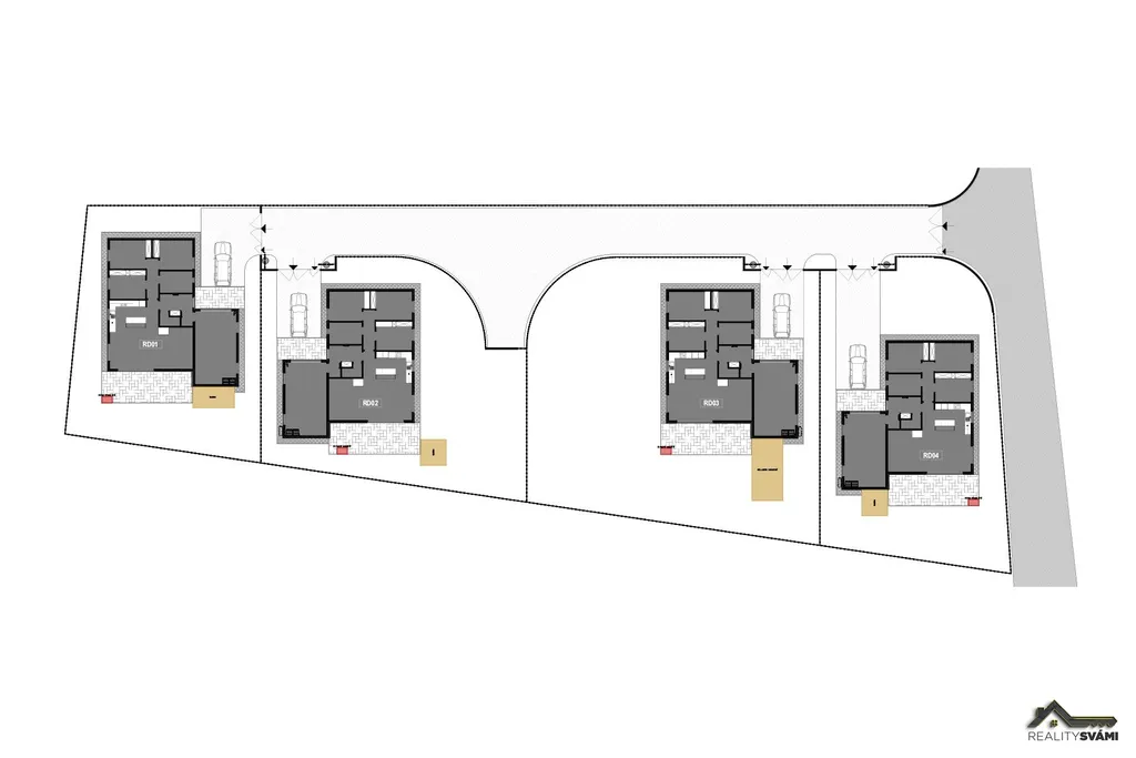 Nabízíme k prodeji moderní přízemní rodinný dům o dispozici 4+kk s garáží a dalším parkovacím místem. Dům je součástí uzavřeného rezidenčního areálu s dálkově ovládanou vjezdovou bránou a vnitřní komunikací vedoucí k jednotlivým domům.
