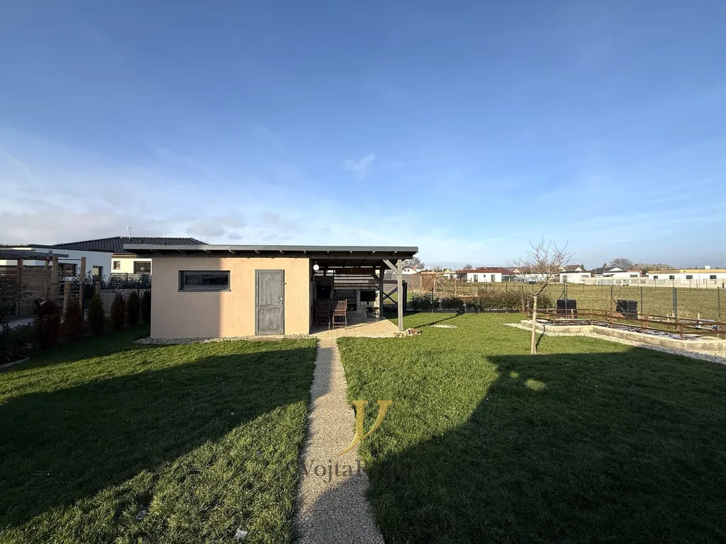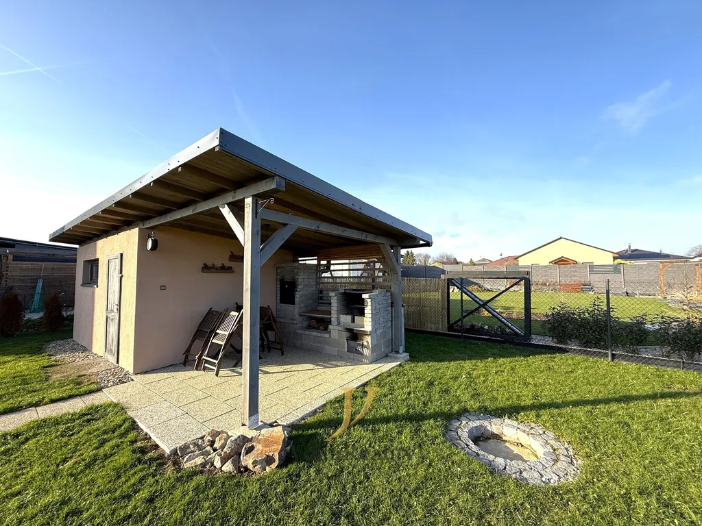 K domu náleží pergola o ploše 10 m², dva samostatné domky – jeden slouží jako úložný prostor - 10 m², druhý jako dílna - 27 m². U dílny se nachází další pergola s udírnou a ohništěm, ideální pro letní posezení s rodinou a přáteli. Parkování je možné před domem i přímo na vydlážděné části pozemku.