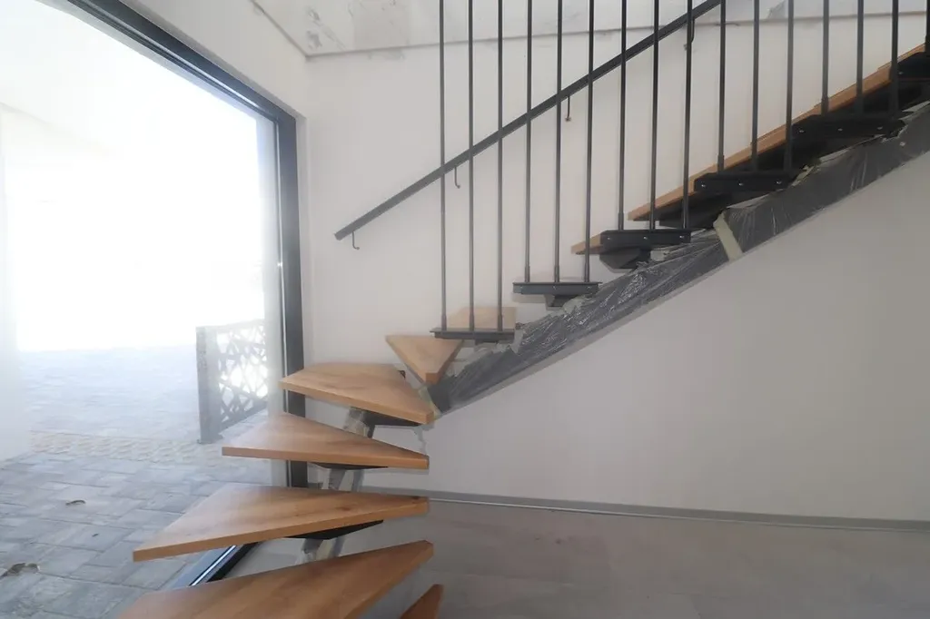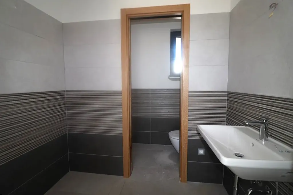 Dvoupodlažní dům o ploše 194,13 m2 stojí na pozemku o rozloze 260 m2 a tvoří polovinu dvojdomku. V přízemí (115,84 m2) se nachází předsíň, komora, technická místnost, tři komfortní ložnice – každá s ensuit koupelnou a lodžií. Vnitřní schodiště vede do prvního patra (78,29 m2), kde je prostorný obývací pokoj s jídelnou a kuchyňským koutem, toaleta, lodžie, terasa (40,09 m2) a bazén (25,70 m2). Dům je orientovaný na jihozápad a vybavený bezpečnostními dveřmi, moskytiérami, venkovními žaluziemi, tepelnými čerpadly se solárním ohřevem vody, klimatizací v obývacím pokoji a v ložnicích. Na pozemku je zahrada se zavlažovacím systémem, parkovací místo až pro 3 auta.