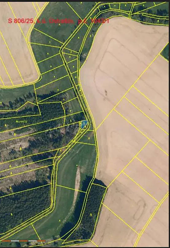 Jedná se o prodej lesního pozemku parc. č. 1043/1 o výměře 194 m2, obklopeného pozemky jiných vlastníků, špatně přístupného, z velké části vytěženého a zarostlého.