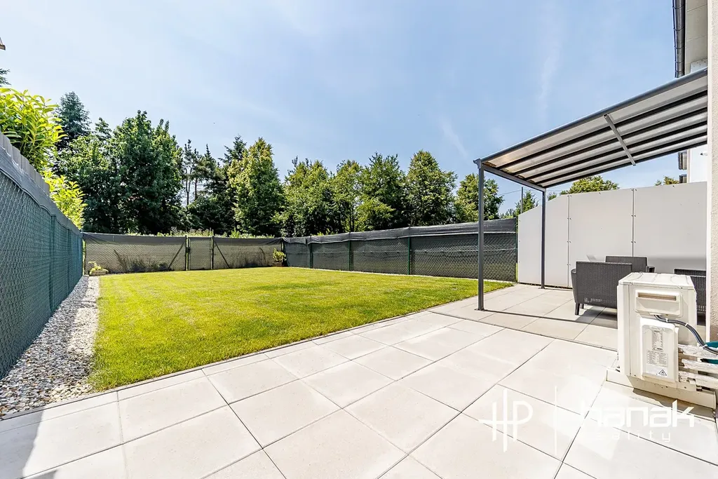 Dispozice domu nabízí prostorné zádveří s úložnými prostory a vstupem do pracovny (13,5 m2), koupelny se sprchovým koutem, umyvadlem, toaletou a technickou místností s pračkou, sušičkou a technologií domu. Přízemí dále nabízí schodišťový prostor s praktickým světlíkem pro přísun denního světla a vstup do hlavního obytného prostoru. Ten má výměru 42 m2 a nabízí dostatek místa pro velkou kuchyňskou linku, jídelní stůl, televizní stěnu a prostornou sedací soupravu. Výhodou je zde prosvětlený interiér díky jižní orientaci a také možnost využití komínové vložky pro krb v zimních měsících. Z prostoru jídelny se vstupuje na částečně krytou terasu s krásným výhledem do zahrady a stromořadí za ní. Zahrada je rovinatá a velmi jednoduchá na údržbu.