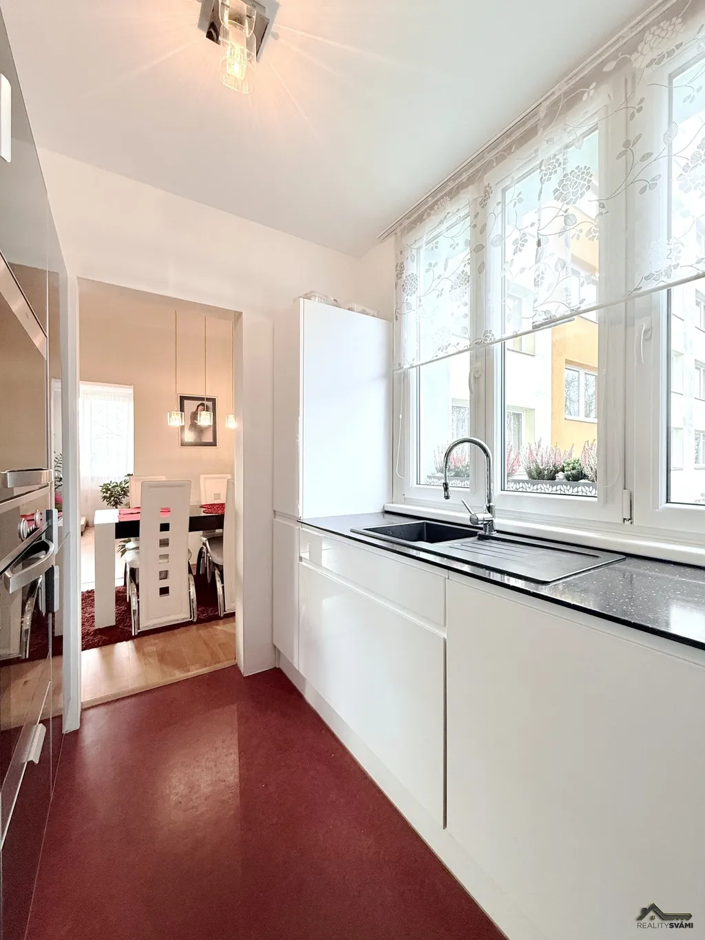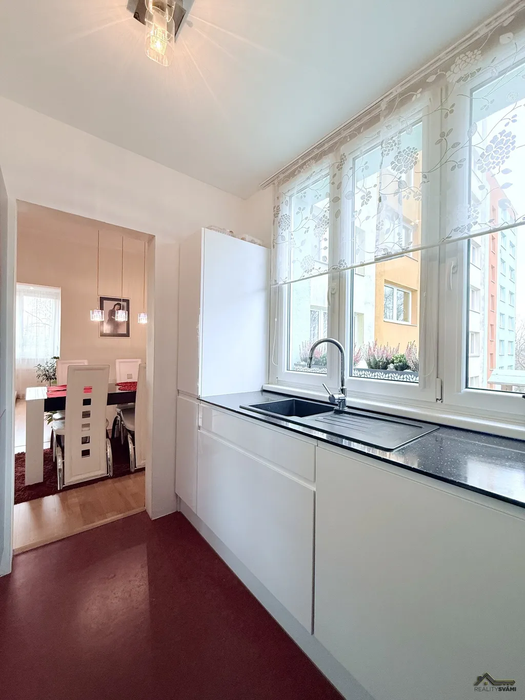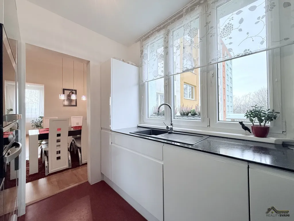 Už při vstupu vás zaujme prostorná chodba, která vytváří příjemný pocit a která krásně propojuje celý byt. Dispozice nabízí tři samostatné pokoje, samostatnou jídelnu a oddělenou kuchyň s moderní a velmi pěknou kuchyňskou linkou včetně spotřebičů. Dominantou bytu je světlý a prostorný obývací pokoj, který propojuje celý byt.