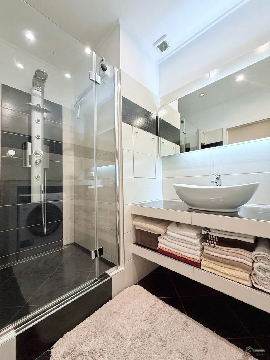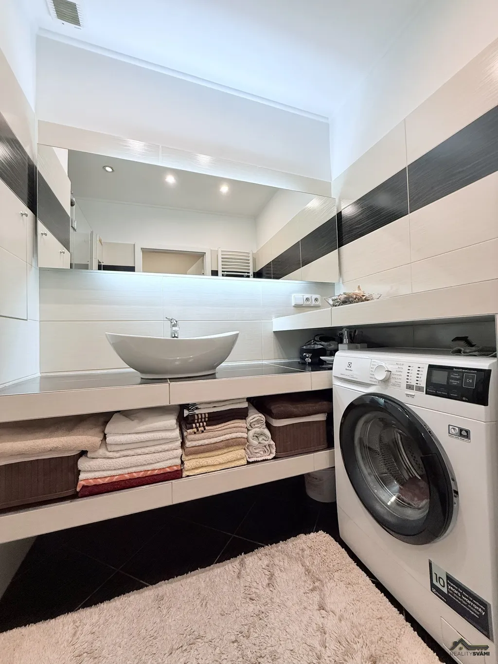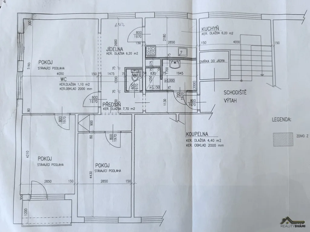Výhodou je i částečné podlahové topení. Součástí bytu je i zasklená lodžie a sklepní kóje.