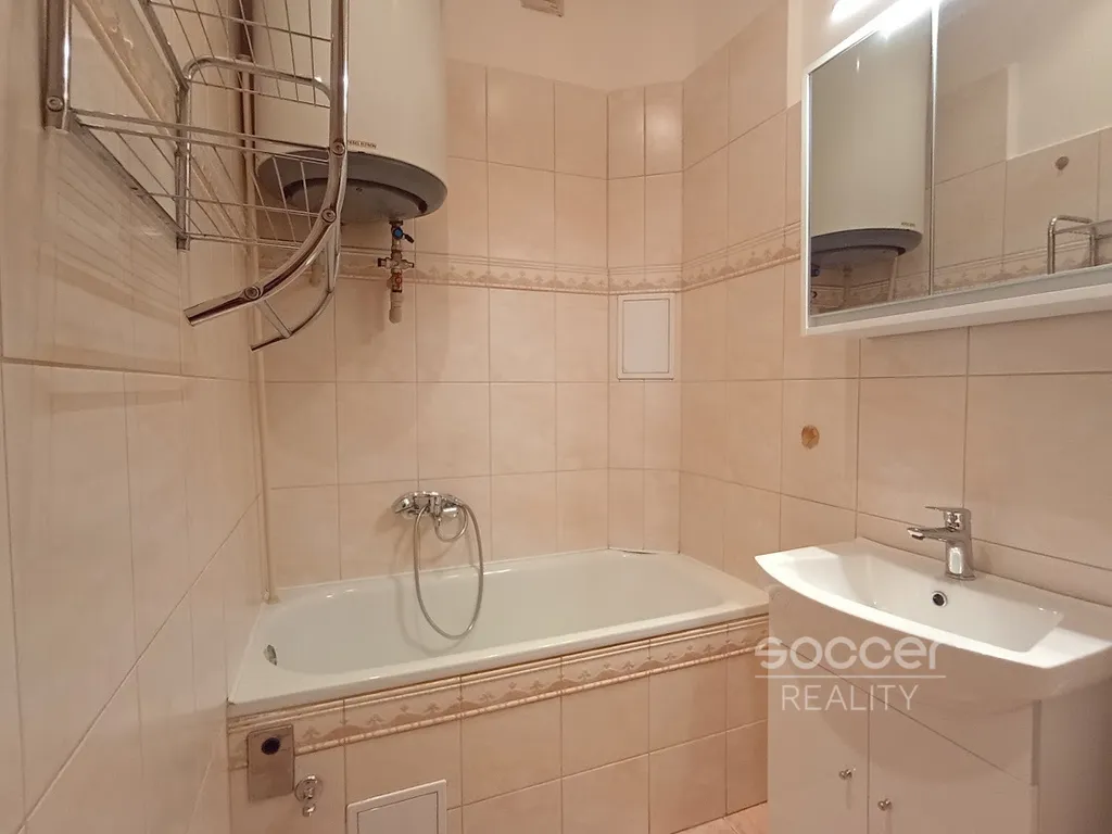Koupelna je vybavena rovnou vanou, umyvadlem se zrcadlem a přípojkou pro pračku. WC je samostatné, což zvyšuje komfort každodenního používání.