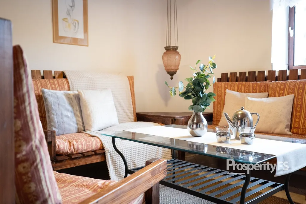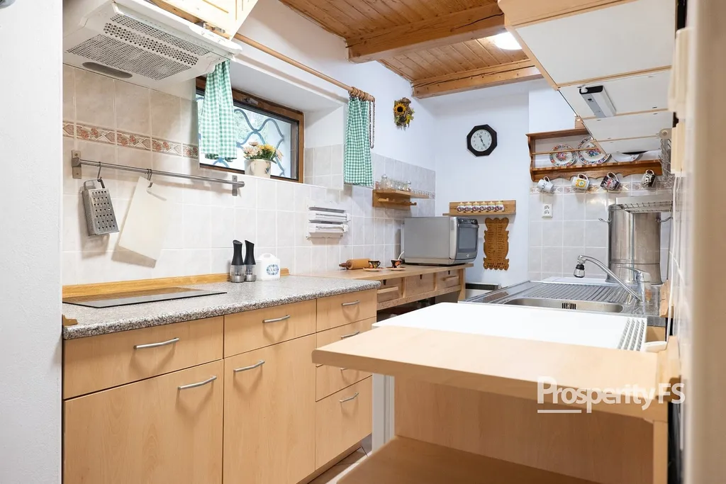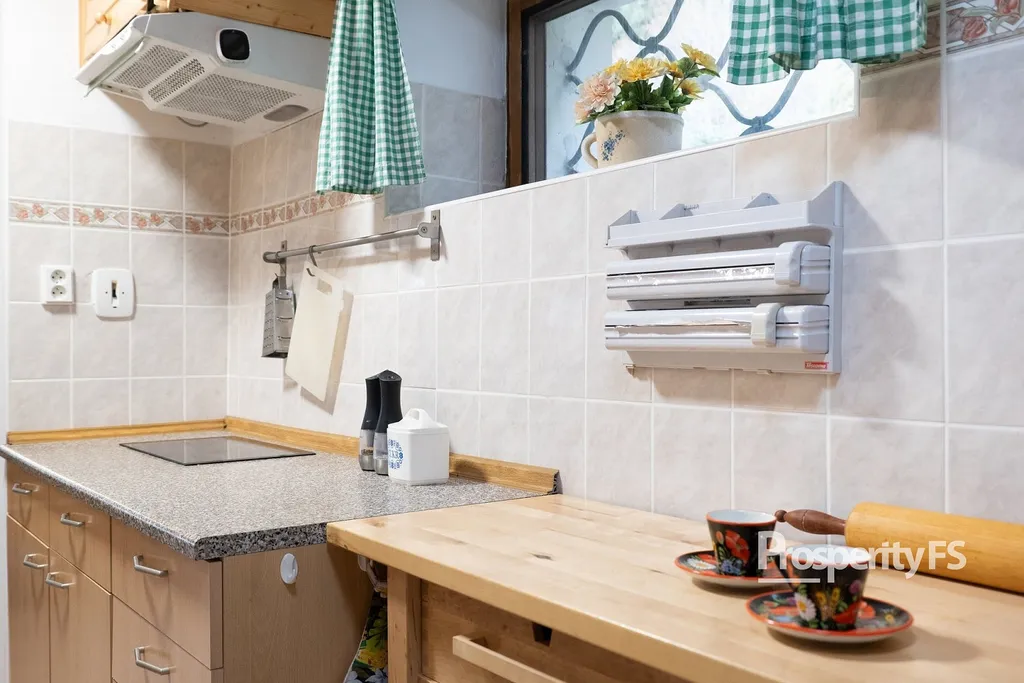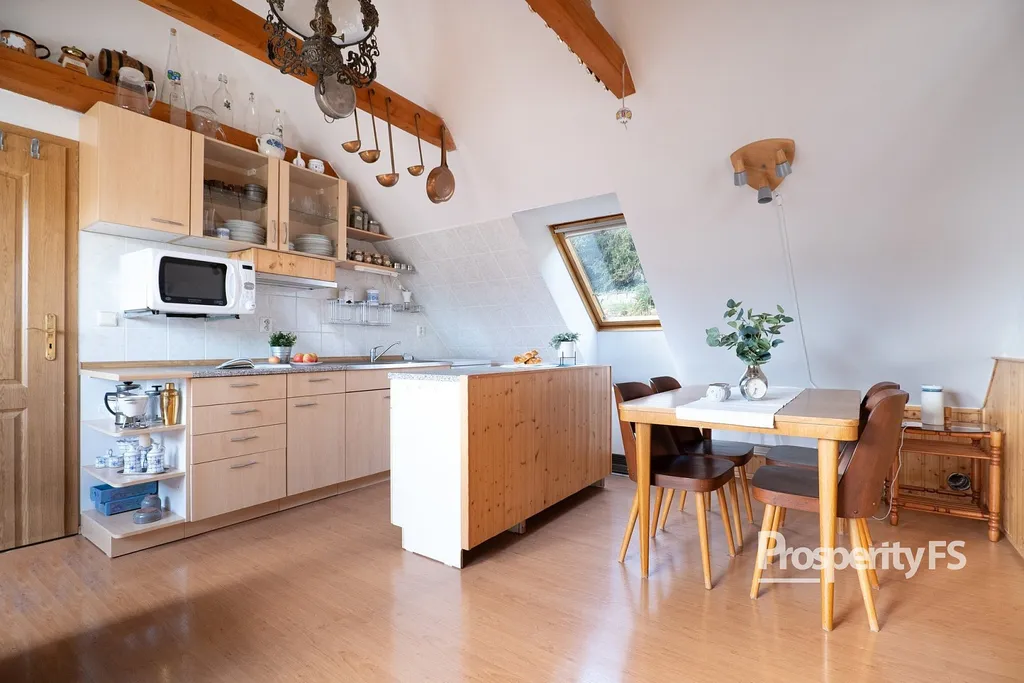 • Byt v 1. NP je ve starším, typicky venkovském stylu, s kouzelnou atmosférou a tradičním vybavením. Byt je přesto plně funkční a samostatný včetně plnohodnotné kuchyně, toalety a sprchového koutu.