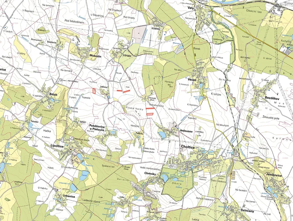 V katastrálním území Tupesy u Přelouče (LV 20) je k prodeji podíl na parcele č. 108/15. Celková výměra této parcely je 10 419 m², z čehož odpovídající podíl činí 3 473 m².