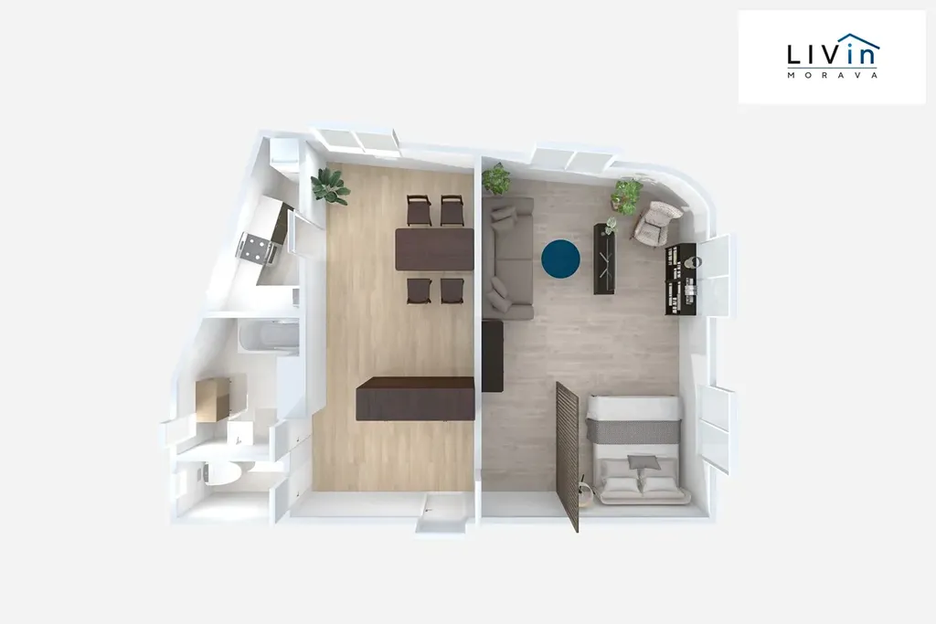 Byt je vhodný pro pár nebo menší rodinu.