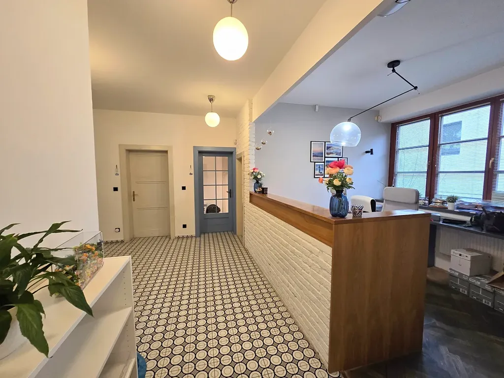 Exkluzivnĕ nabízíme krásnou vilu v atraktivní lokalitĕ Braníka s výbornou doatupností do centra města.Vila slouží a je upravena na kancelářské prostory s rozmístnĕním viz plánky.Dále disponuje velkou terasou a zahradou, která může zpříjemnit pobyt v kanceláři.Dále jsou zde garáže pro 4 auta.Rozvedeny jsou i sítĕ a také je zde internet vzduchem od společnosti Vodafone.Kanceláře jsou k diapozici od 1.Dubna 2025