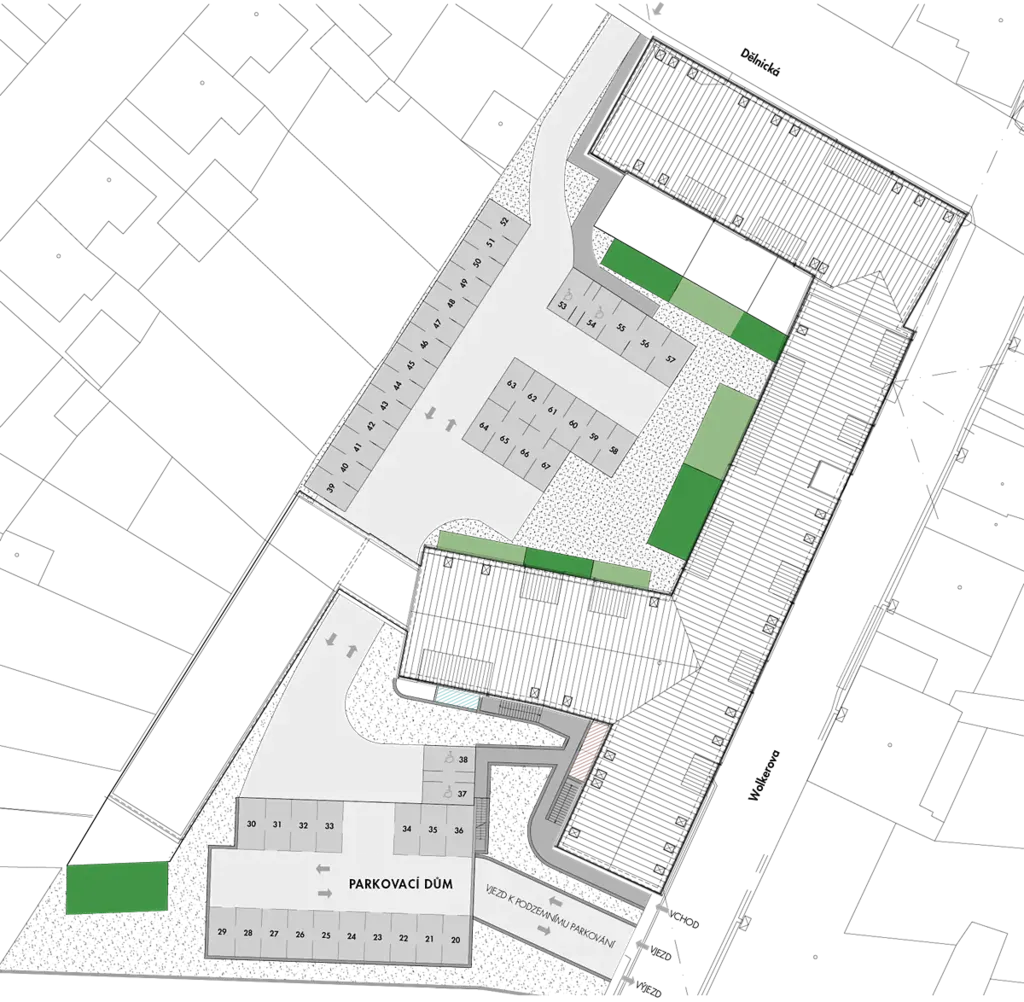 Parkování: možnost dokoupení stání ve vnitrobloku nebo parkovacím domě