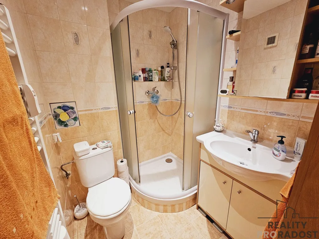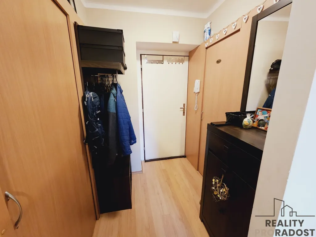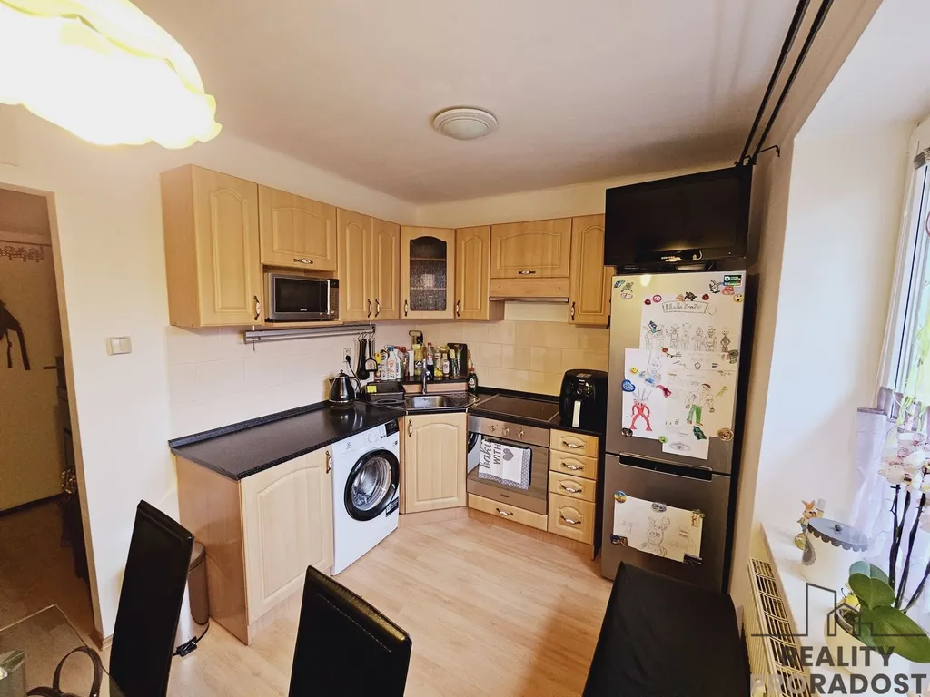 Byt je částečně vybavený ( kuchyňská linka bez lednice a pračky a v pokoji zůstávají vestavěné skříně).