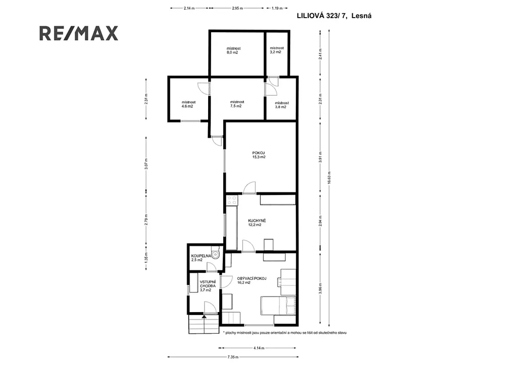 Plánek, který je součástí fotodokumentace, je pouze orientační. Aktuálně probíhá zpracování pasportu nemovitosti.