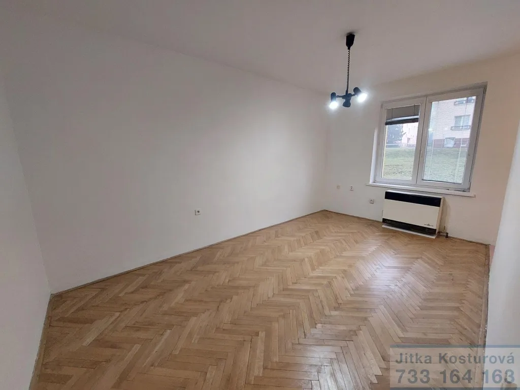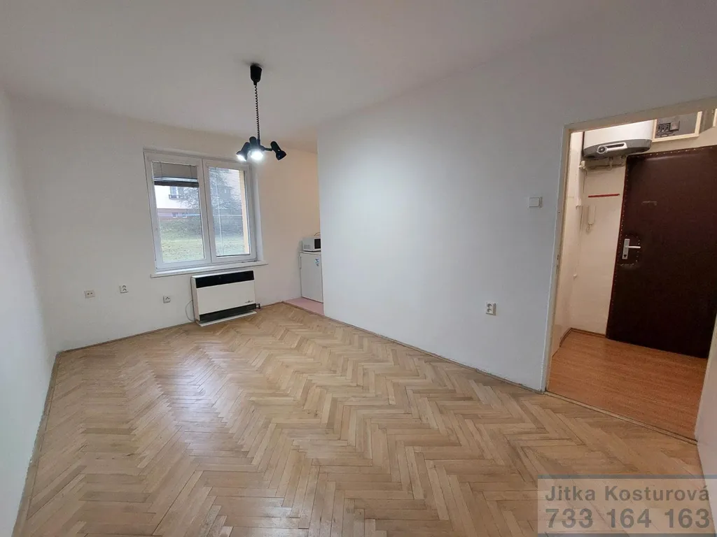 Byt je po částečné rekonstrukci, má plastové okno se žaluziemi a na podlaze dřevěné parkety. Sestává z předsíně, hlavního pokoje, koupelny a kuchyně, která je částečně oddělena od pokoje. Kuchyňka je vybavena kuchyňskou linkou, pračkou, lednicí a mikrovlnnou troubou. V koupelně se nachází umyvadlo, sprchový kout a WC. Vytápění bytu zajištěno plynovým topením vafky. K ohřevu vody slouží bojler, umístěný v předsíni.