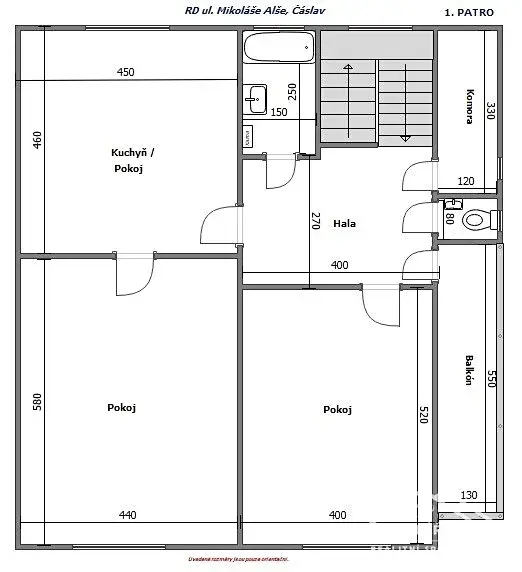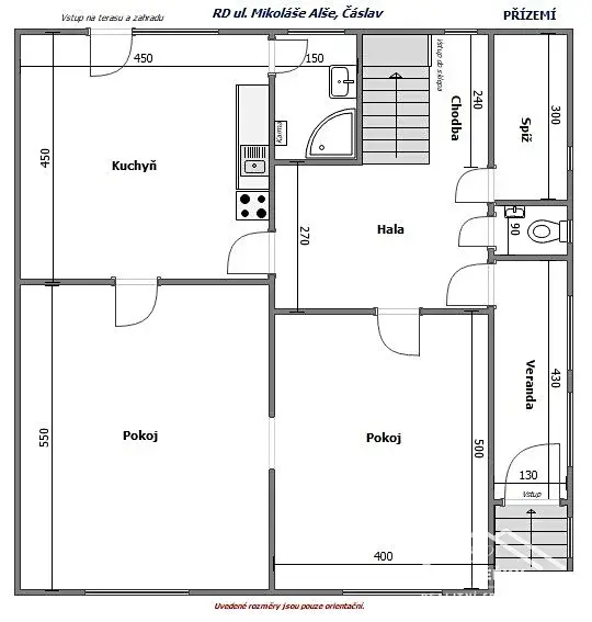 Ale začněme DOMEM - ten byl přizpůsoben k bydlení dvou rodin, tzn., že po vstupu z verandy najdeme v přízemí halu, prostornou kuchyň s jídelním koutem, dva pokoje, koupelnu, samostatné WC a komoru. A úplně to samé se nachází v prvním patře, jen kuchyňská linka je již odstraněná. Z haly v horním patře je vstup na lodžii. Dům je z poloviny podsklepený a 3 místnosti sestávající z kotelny, skladu a sklepa na ovoce, jsou suché a udržované. Z kuchyně v přízemí se vstupuje na zahradu přes zastřešenou, dlážděnou terasu, která díky své orientaci na jihozápad poskytne příjemnou relaxaci hlavně odpoledne a k večeru. Nemovitost je v původním stavu, napojena na všechny IS, vytápění je zajištěno plynovým kotlem. Voda a kanalizace jsou obecní, na zalévání zahrady je k dispozici studna.