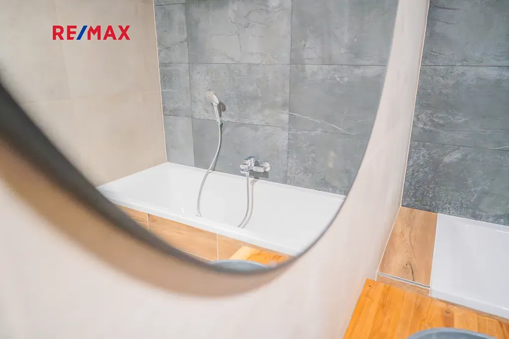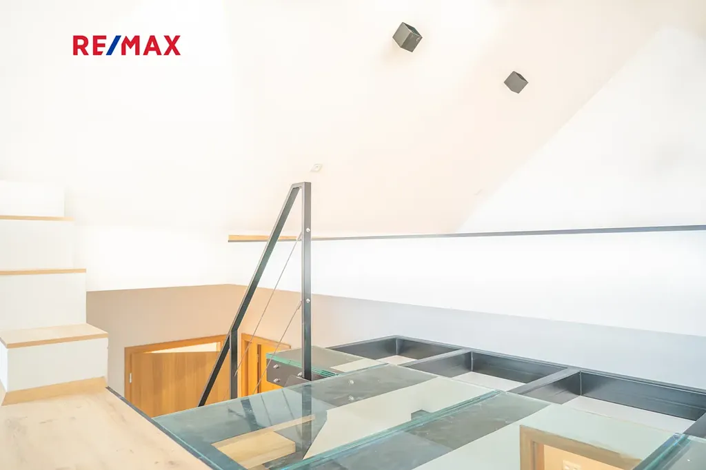 Byt sám o sobě vyniká promyšlenou a velmi atypickou dispozicí. Dominantou hlavního podlaží je moderní kuchyňská linka s dechberoucím výhledem až k vrcholkům Krkonoš včetně Sněžky. Na ni navazuje stylový obývací pokoj, který v sobě krásně spojuje současný design a přiznané prvky dřeva — prostor působí vzdušně, ale zároveň příjemně útulně. V této části naleznete také samostatné WC, komoru a prostornou koupelnu s vanou i sprchovým koutem. Kromě toho jsou zde dva oddělené pokoje — skvělá volba pro dětské pokoje, pracovnu či hostinský pokoj.