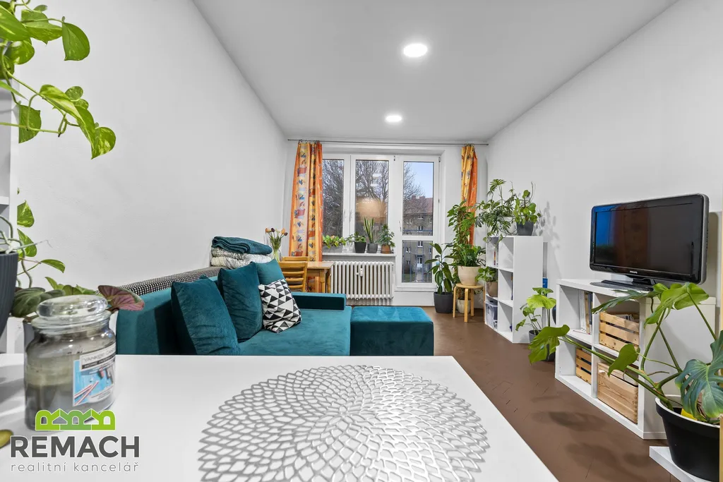 Byt o dispozici 2+1 nabízí dva neprůchozí pokoje a kuchyni s linkou. V zádveří je chodba se šatní skříní. Koupelna je vybavena vanou, umyvadlem a pračkou. Prostorný obývací pokoj má rozlohu 20 m2 a nabídne vstup na balkon. Ložnice má rozlohu 13,26 m2, kuchyně s linkou 9,82 m2. Byt nebude vybaven lednicí a sedací soupravou.