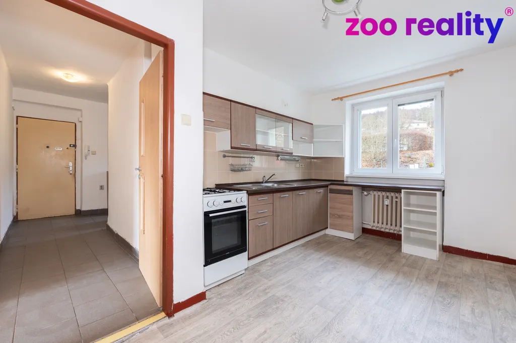 k prodeji nabízím byt v osobním vlastnictví o dispozici 2+1 a výměře 58 m², který se nachází ve 2. patře velmi udržovaného a čistého domu v klidné části města Meziboří, obklopené zelení.