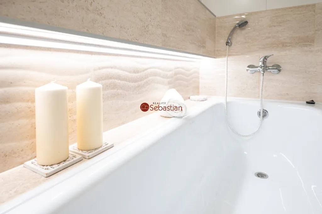 Celý byt prošel v předchozích letech rozsáhlou nákladnou rekonstrukcí včetně veškerých rozvodů. Dva prostorné samostatné pokoje, krásná koupelna s vanou, WC a druhé samostatné WC s přípravou pro pračku. Moderní kuchyňská linka s varnou deskou, troubou prostorem pro vestavěnou myčku a ledničku. Připravené datové rozvody pro levné internetového připojení. Jedná se o velmi příjemný moderní reprezentativní byt. Společné části domu jsou monitorovány bezpečnostními kamerami. V domě dva výtahy, služba domovníka, v přízemí domu cukrárna, kadeřnictví, občerstvení atd. Vedle bytového domu nákupní centrum a veřejné parkoviště.