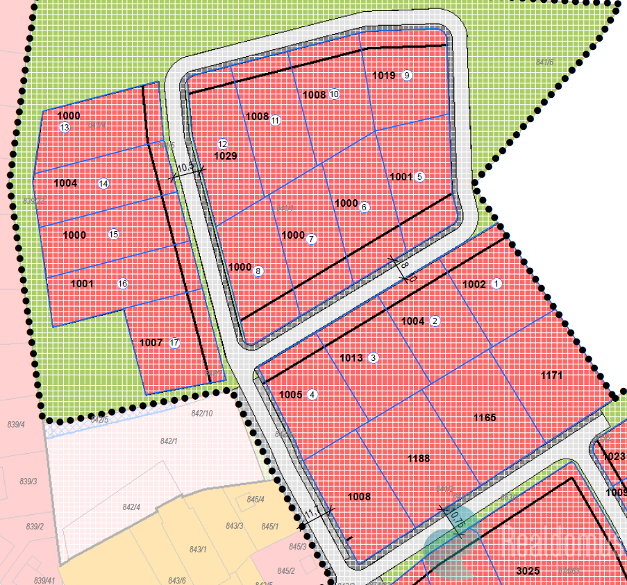 - orientační výměra pozemků bude upřesněna po geodetickém zaměření, pozemky budou větší než 1000 m2.