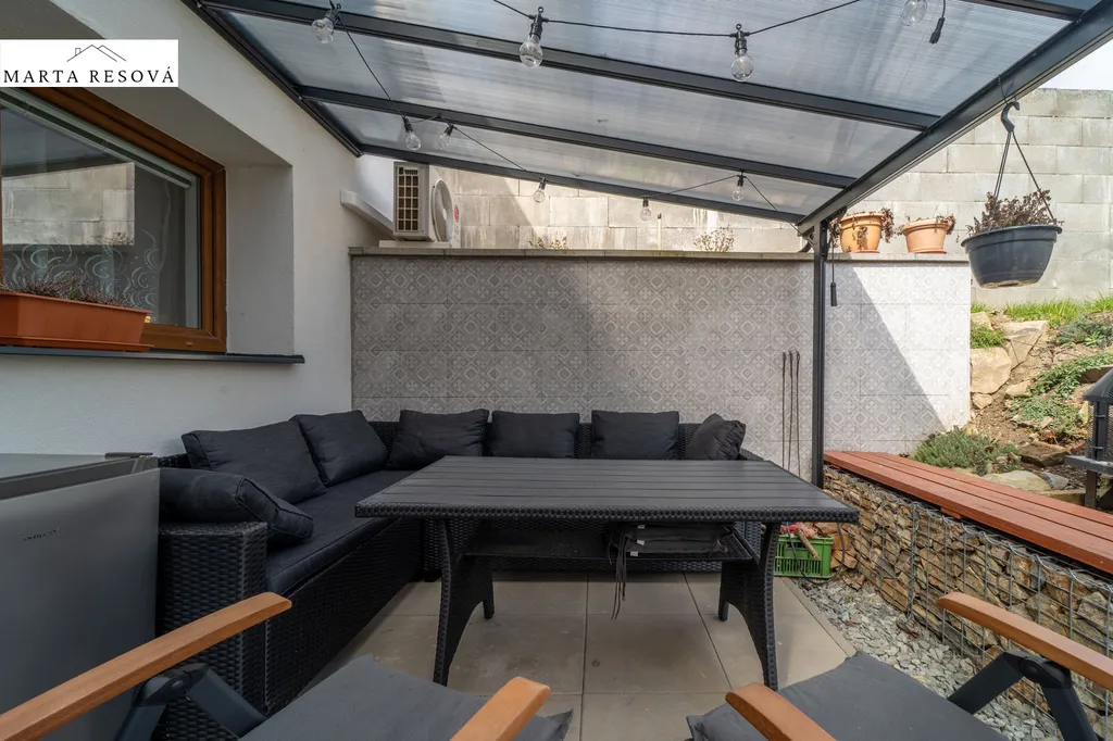 Venkovní plochy: Zahrada 118 m² + Dvorek 60 m² + Terasa s pergolou