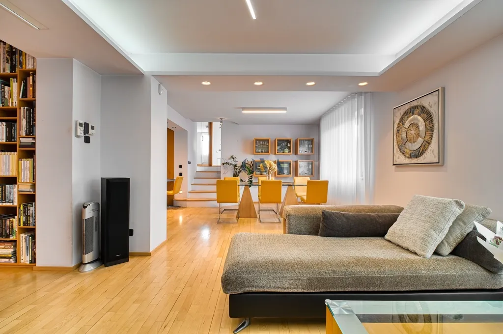 • prostorný obývací pokoj plynule propojený s jídelnou a kuchyňským koutem