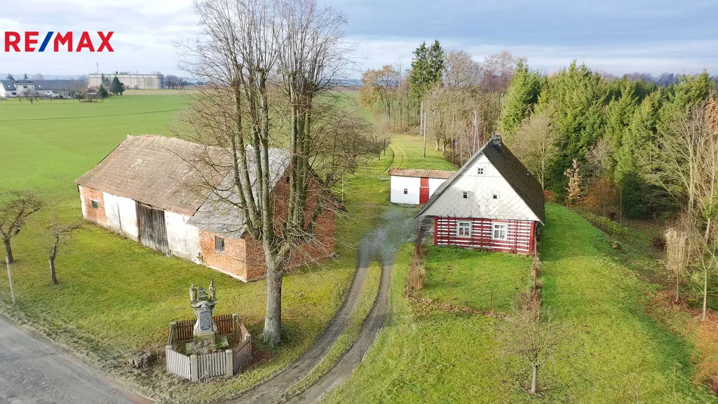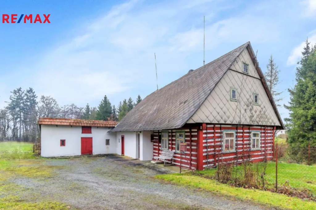 Hledáte tradiční roubenku s pozemky, které mají budoucnost? Nabízíme k prodeji velmi zajímavý soubor nemovitostí — roubená chalupa s kamennými přístavky, velká stodola, další hospodářské stavby a rozlehlé pozemky vedené jako plochy bydlení (bytové domy).