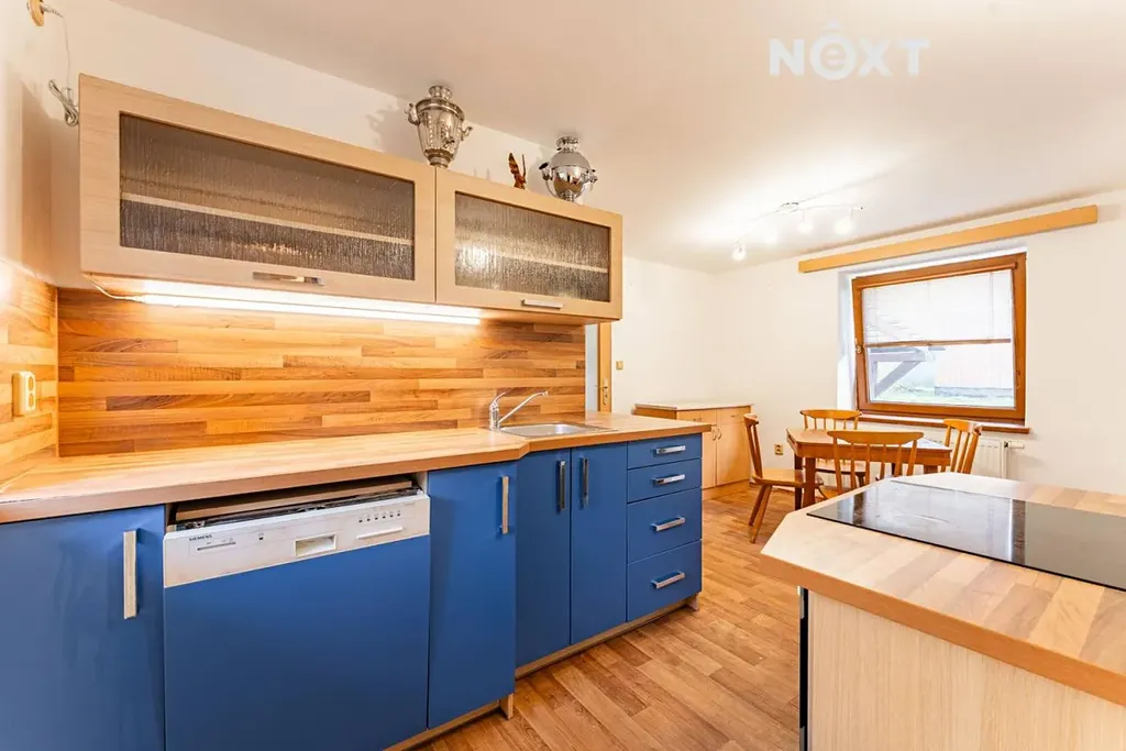 Uvnitř domu se nachází kuchyň, chodba, ložnice, koupelna s vanou a samostatná toaleta.