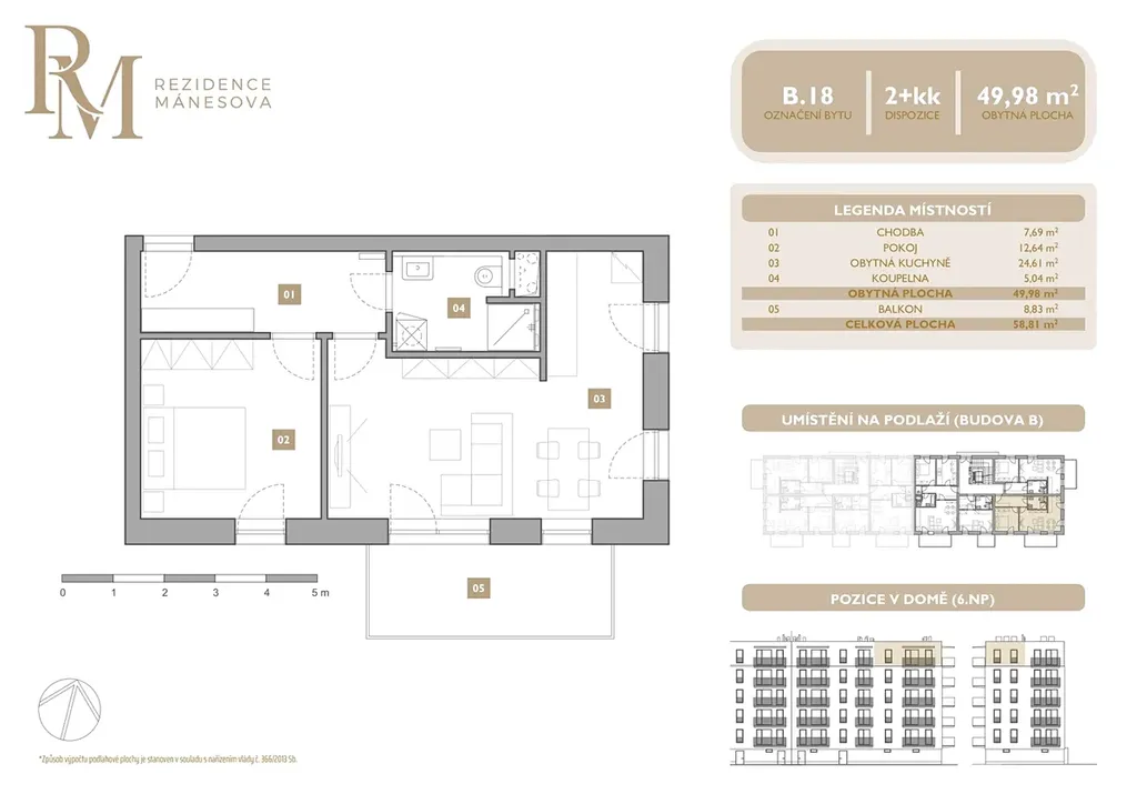 Součástí prodeje je nutnost zakoupení venkovního parkovacího stání, k bytu lze dále dokoupit sklepní kóji. Rezidence se nachází v klidné části města s kompletní občanskou vybaveností – obchody, školy, restaurace i zastávka veřejné dopravy jsou v docházkové vzdálenosti. Byty 2+kk kombinují kvalitní zpracování, příznivou cenu a moderní styl bydlení. Dokončení výstavby 12/2026.