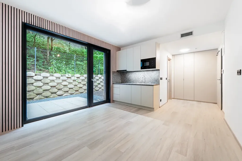Nabízíme k prodeji investiční ubytovací jednotku 1+kk (25,5 m2) s terasou (11 m2) v dokončeném rezidenčním projektu Duo Hlubočepy v Praze 5, v blízkosti Smíchova.