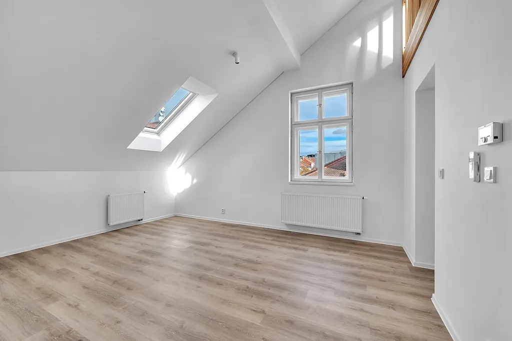 Byt je součástí representativního cihlového domu s výtahem, kdy v r. 2024 vznikl na půdě této budovy zcela nový podkrovní byt. Byt je vybaven klimatizací a tak i ve dnech horka Vám vedro nebude, pokud nebudete chtít. Topení a teplá voda jsou řešeny plynovým kotlem s klasickými radiátory.