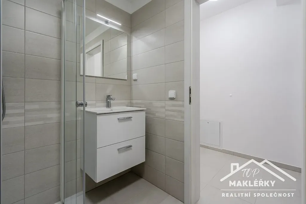 Bytová jednotka je zcela nová, nikdy neobývaná a připravena pro jednu, maximálně 2 osoby. Pro nájemce je připravena kuchyňská linka vybavena indukční deskou, trouba, myčka nádobí a kvalitní granitový dřez. V pokoji je položena plovoucí podlaha, v koupelně a chodbě dlažba. V koupelně umyvadlo, sprchový kout a toaleta, příprava pro pračku.