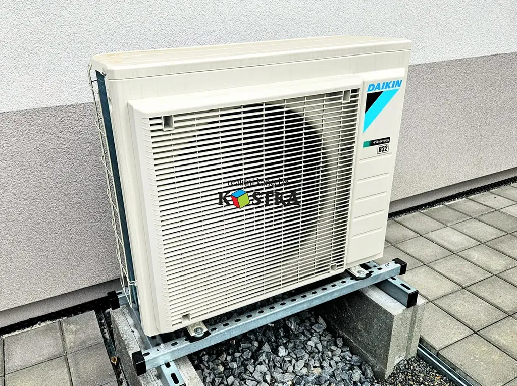 Vytápění je tepelným čerpadlem s rozvody do podlah.