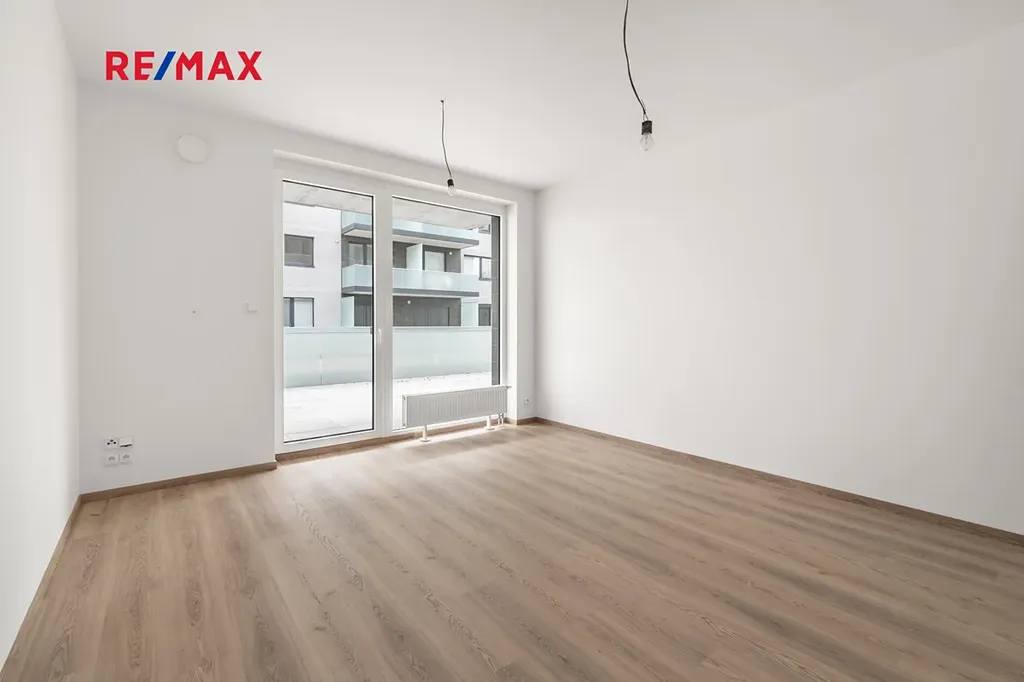Byt je umístěn v 1.NP s výhledem do vnitrobloku. Budova má v úrovni terénu garážová stání a nad nimi je teprve 1.NP, tedy v jiné budově by označení podlaží bytu bylo v 2.NP.