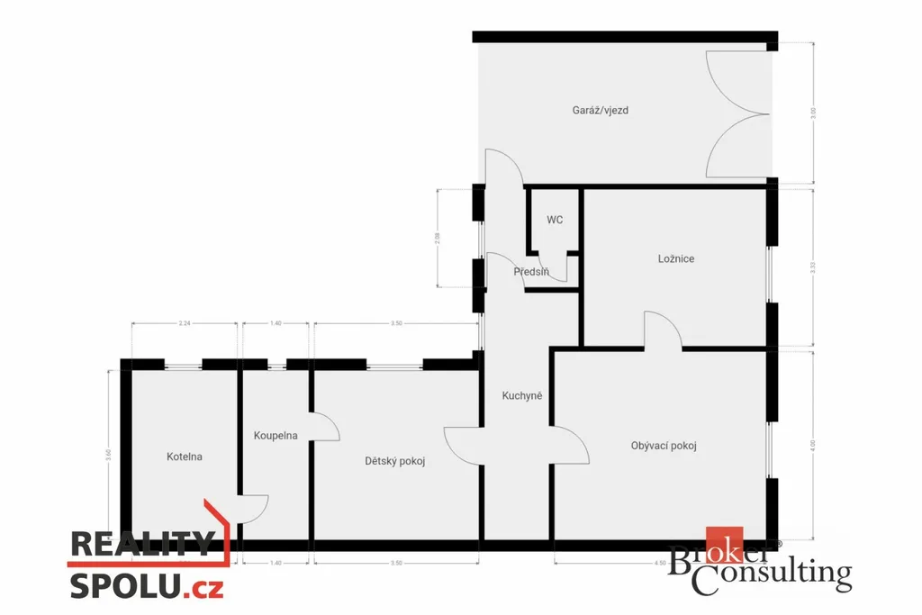 V přízemí najdete kuchyň, dětský a obývací pokoj, ložnici, samostatnou koupelnu a WC. K dispozici je také kotelna a prostorný vjezd/garáž.