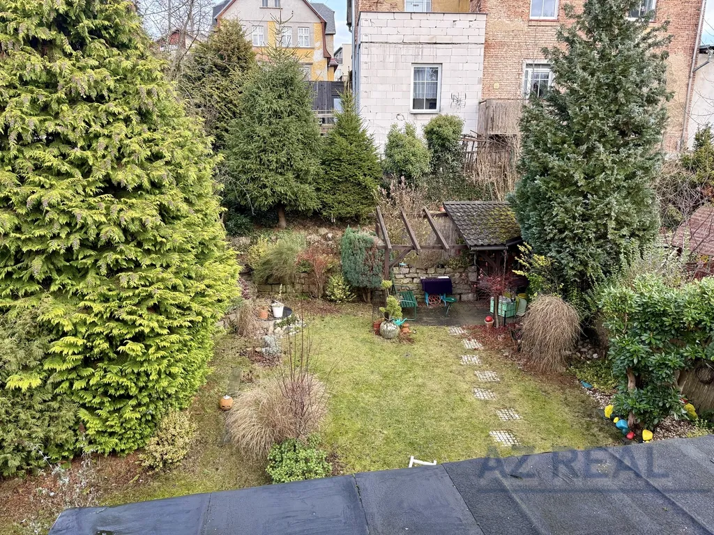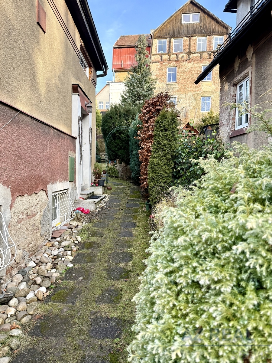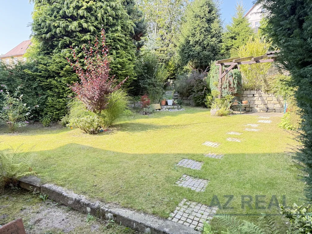 Dům stojí na upraveném pozemku s menší zahradou a příjemným altánem k posezení. K dispozici jsou tři obytná podlaží:
