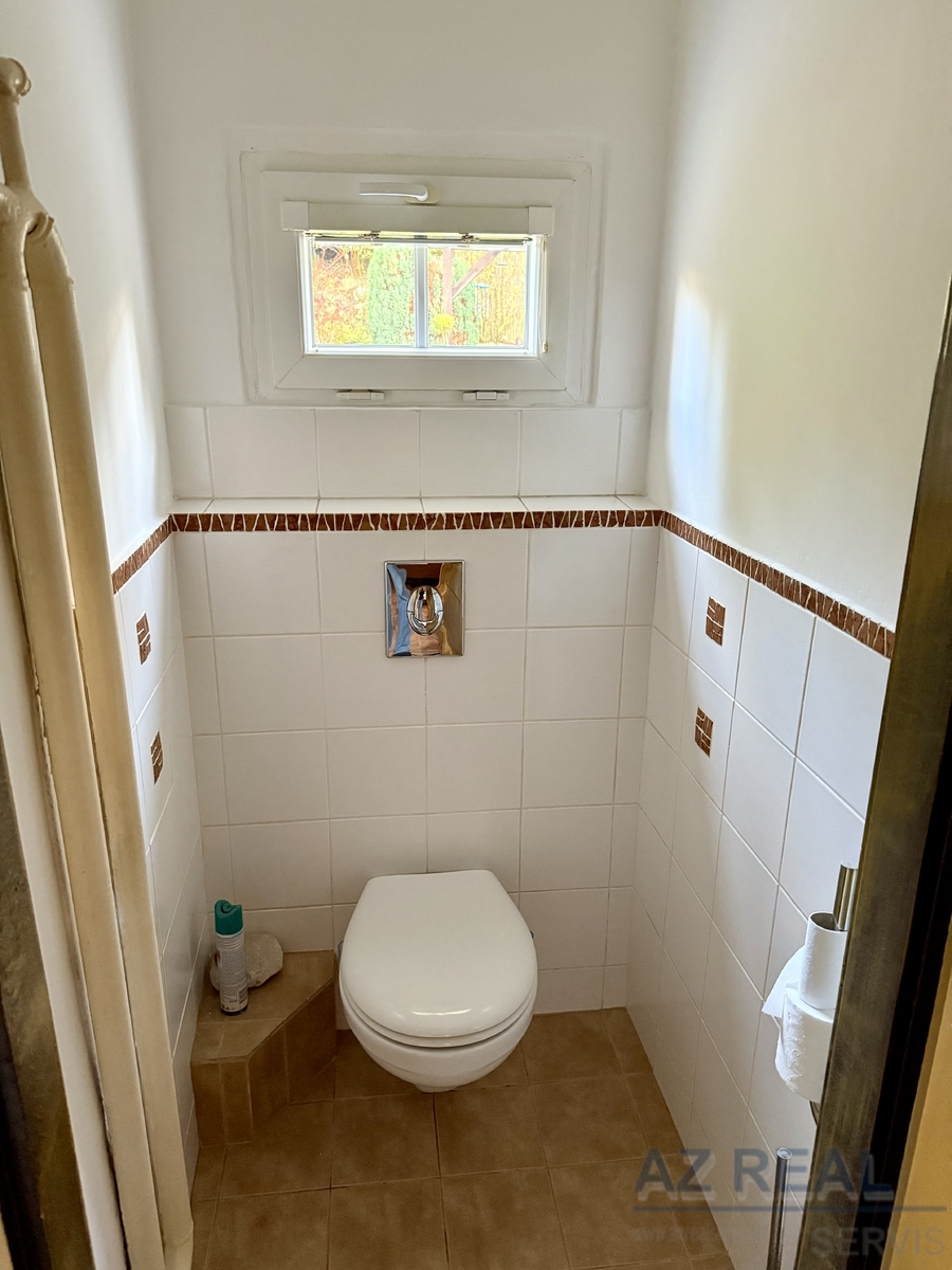 Prostorný obývací pokoj s oddělenou jídelnou, samostatná místnost s kuchyní (kuchyňská linka je vybavená spotřebiči dle fotografií), komora na potraviny, WC a koupelna s vanou.