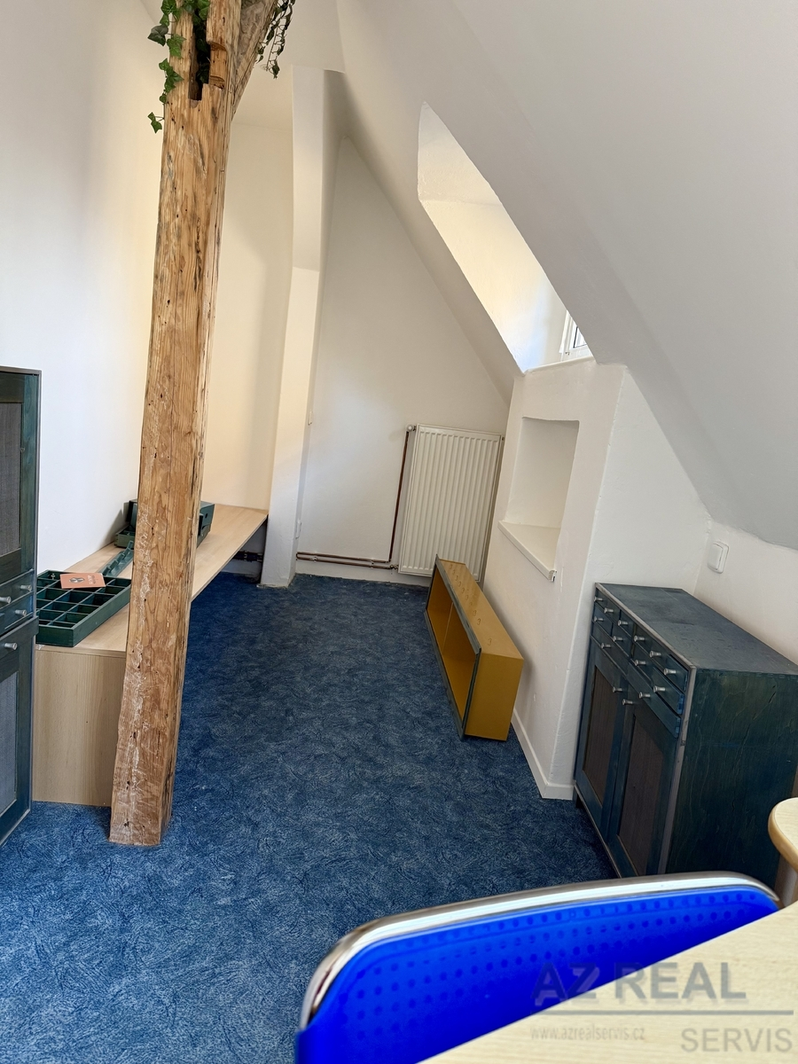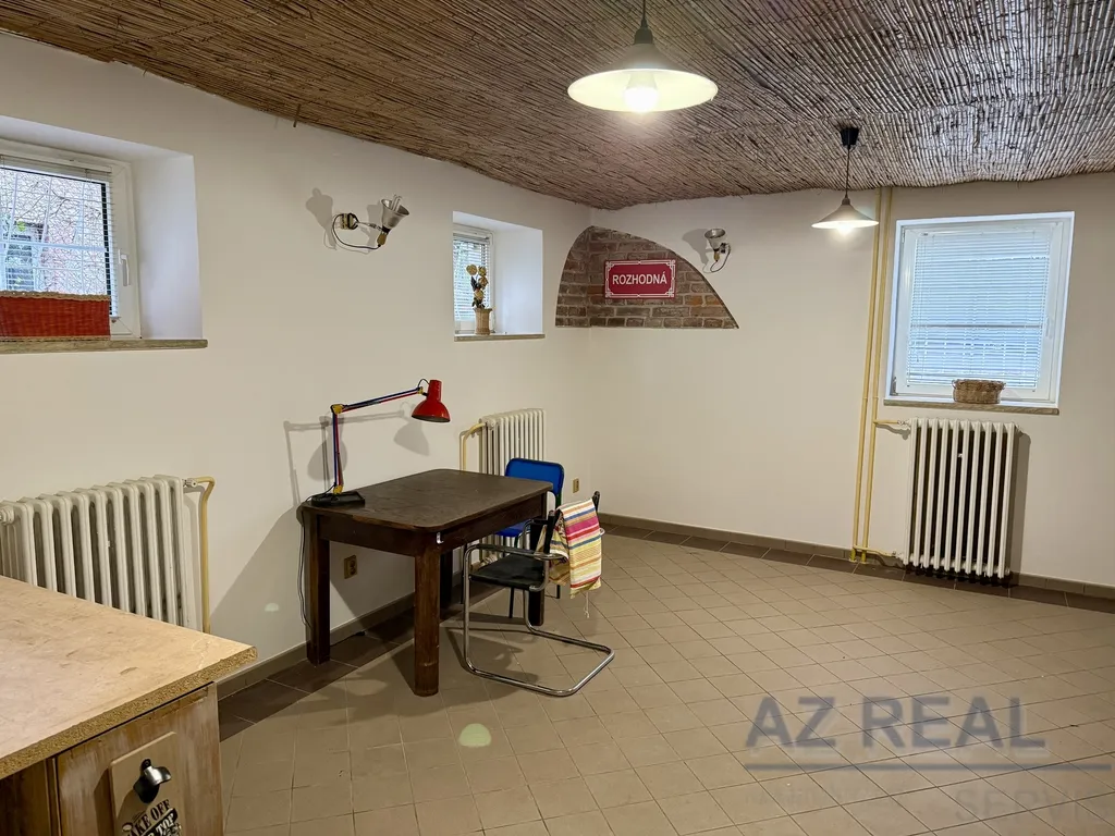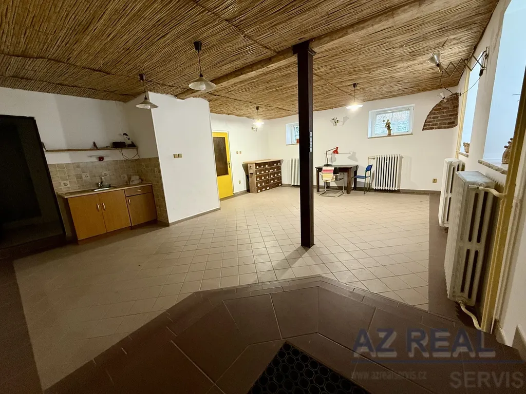 Samostatná garsoniéra s kuchyňským koutem a sociálním zázemím. Vhodná jako samostatná jednotka pro bydlení, ale také jako dílna, kancelář, sklad či menší provozovna. Prostor je propojen s dalšími patry interiérovým schodištěm.