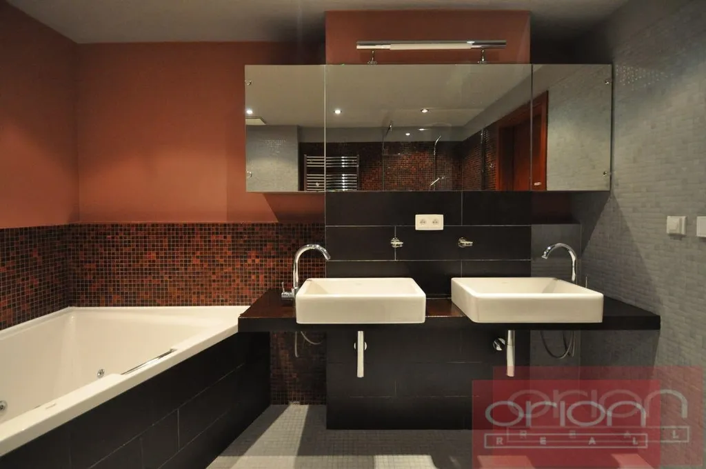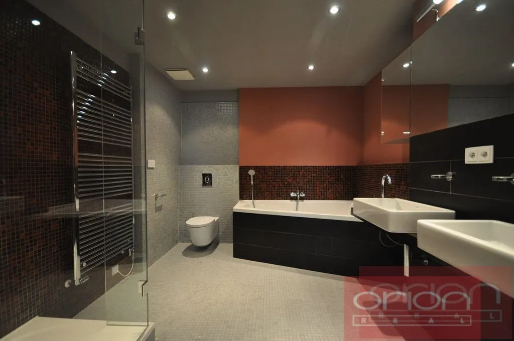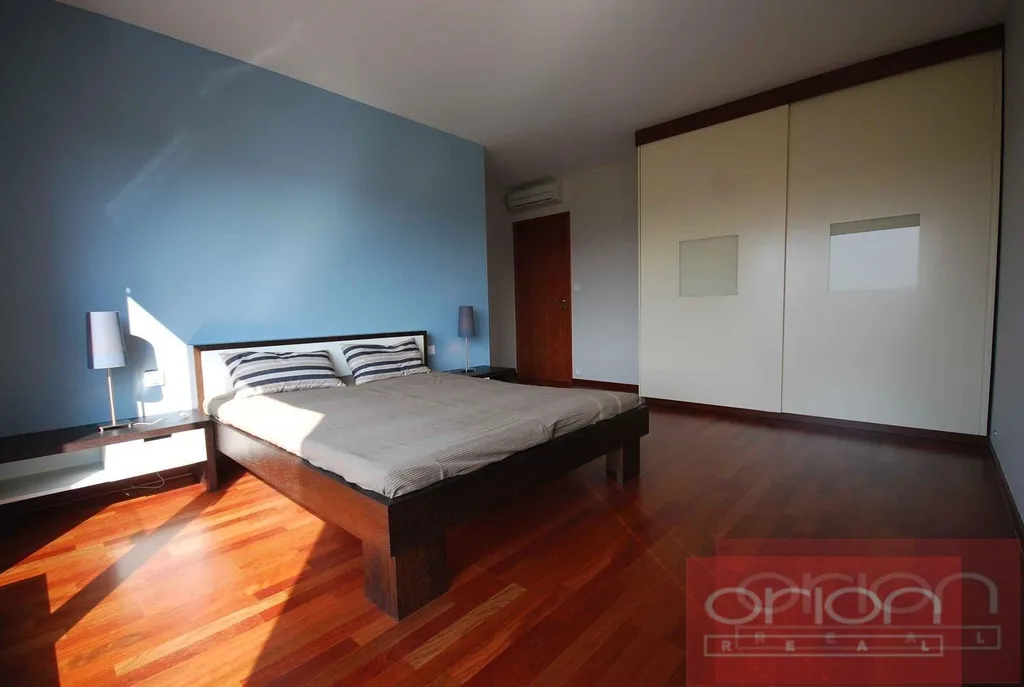 Nabízíme k pronájmu luxusní plně zařízený klimatizovaný byt 4+kk v 1. patře domu s výtahem v soukromém uzavřeném komplexu se zahradami a s 24/7 recepcí/bezpečnostní službou v oblíbené lokalitě Praha 2 - Vinohrady. Byt o rozloze 134 m² nabízí vstupní halu, prostorný obývací pokoj s jídelním koutem a plně vybavenou kuchyní a vstupem na terasu s výhledem na město, 3 ložnice, 2 koupelny, toaletu pro hosty. Slunná terasa a balkon o celkové rozloze 16 m² nabízejí nádherný výhled na Staré Město a Pražský hrad. K vybavení bytu patří dřevěné podlahy, luxusní nábytek včetně postelí a skříní na míru, vestavěné skříně ve všech pokojích, klimatizace, kabelové a satelitní TV připojení, vysokorychlostní internet, telefon, pračka a samostatná sušička úložný prostor v suterénu. Parkovací místo v podzemní garáži k dispozici za příplatek 5000 Kč. Byt se nachází v atraktivní lokalitě jen pár minut od metra a tramvajové zastávky Náměstí Míru, naproti Riegrovým sadům a v docházkové vzdálenosti od Václavského náměstí.