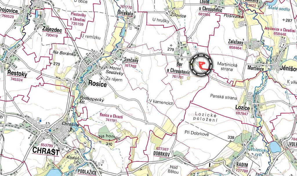 Nabízíme k prodeji dva pozemky ve 100% vlastnictví, nacházející se v katastrálním území Bor u Chroustovic, okres Chrudim. Pozemky jsou zapsány na listu vlastnictví č. 1071 a zahrnují: