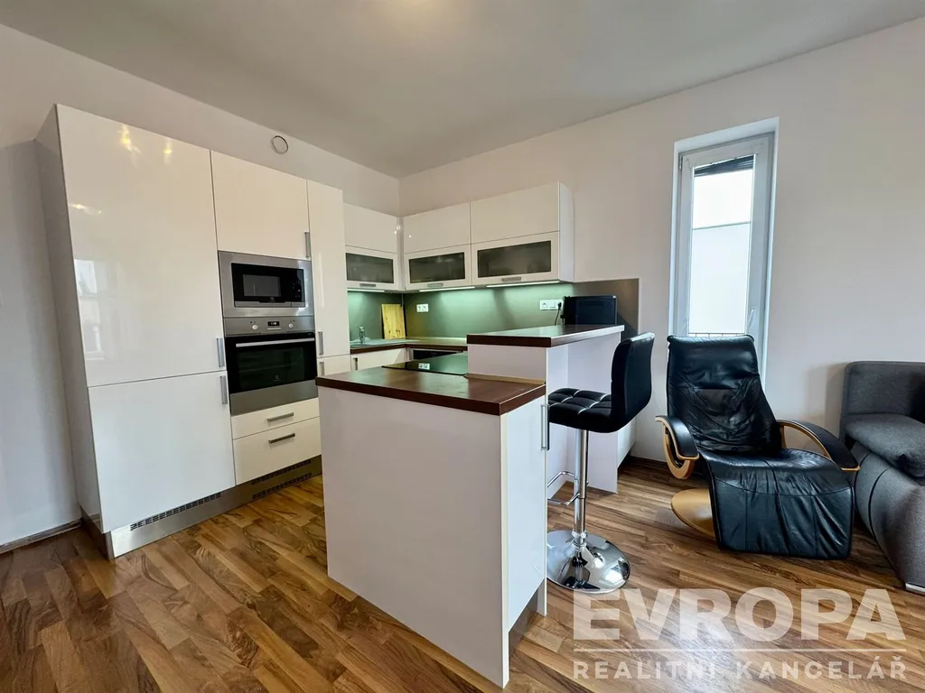 Byt je kompletně vybaven nábytkem i spotřebiči, a umožňuje tak okamžité nastěhování bez nutnosti dalších úprav. Dispozice zahrnuje prostorný obývací pokoj s kuchyňským koutem, samostatnou ložnici, menší koupelnu s WC a praktickou vstupní chodbu s úložnými prostory. Z obou pokojů je možný vstup na balkón o výměře 4m². Na patře k bytu náleží zděná sklepní kóje 1,4m².