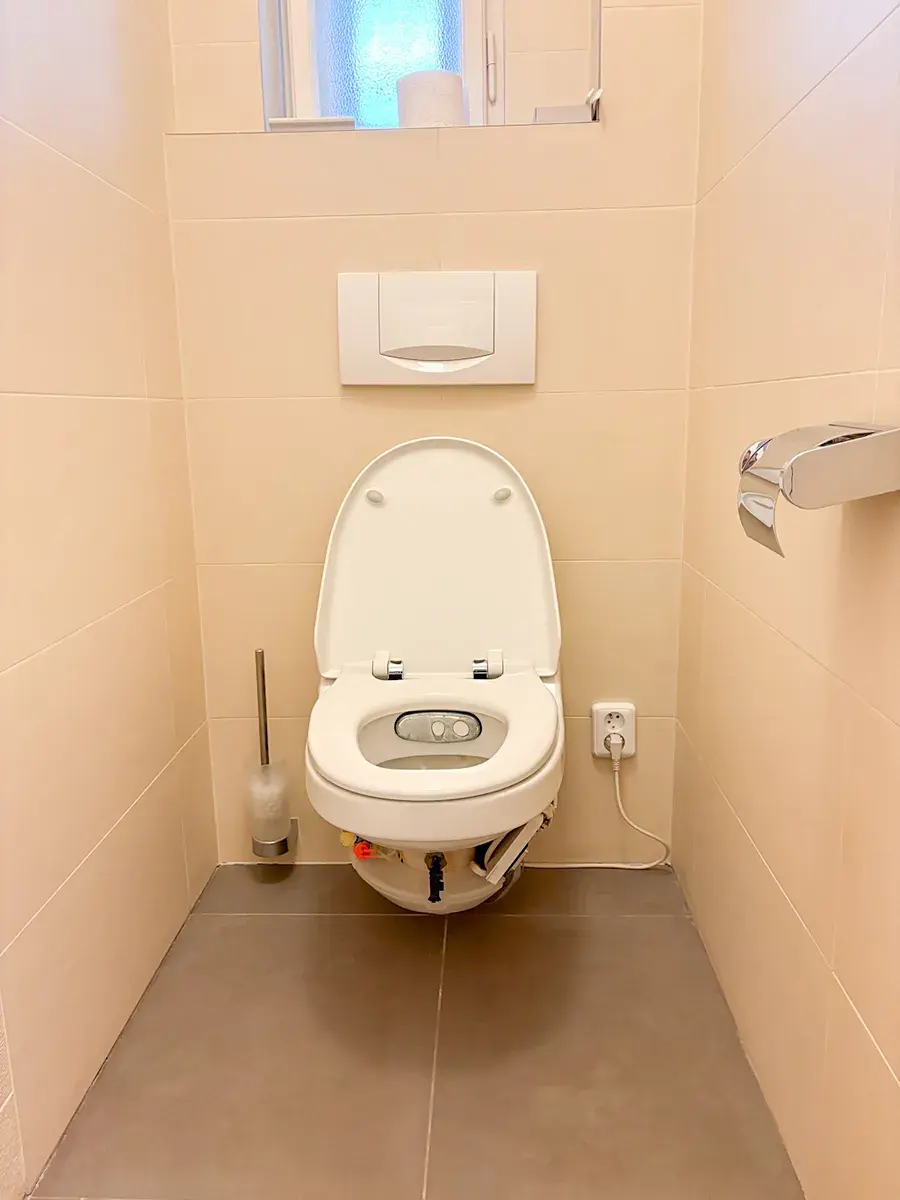 - Vytápění je řešeno centrálně, ohřev vody zajišťuje elektrický bojler.