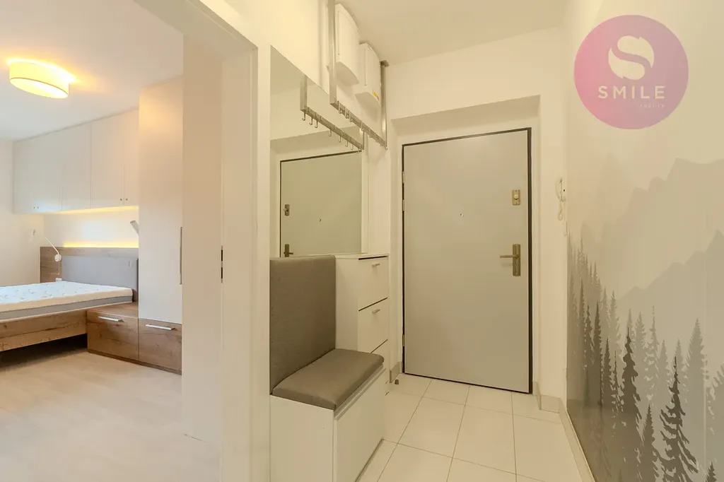 Byt působí velmi útulně, s promyšleným řešením každého metru. Interiér je laděn do příjemných tónů a je připraven k okamžitému nastěhování — stačí si přinést jen osobní věci.
