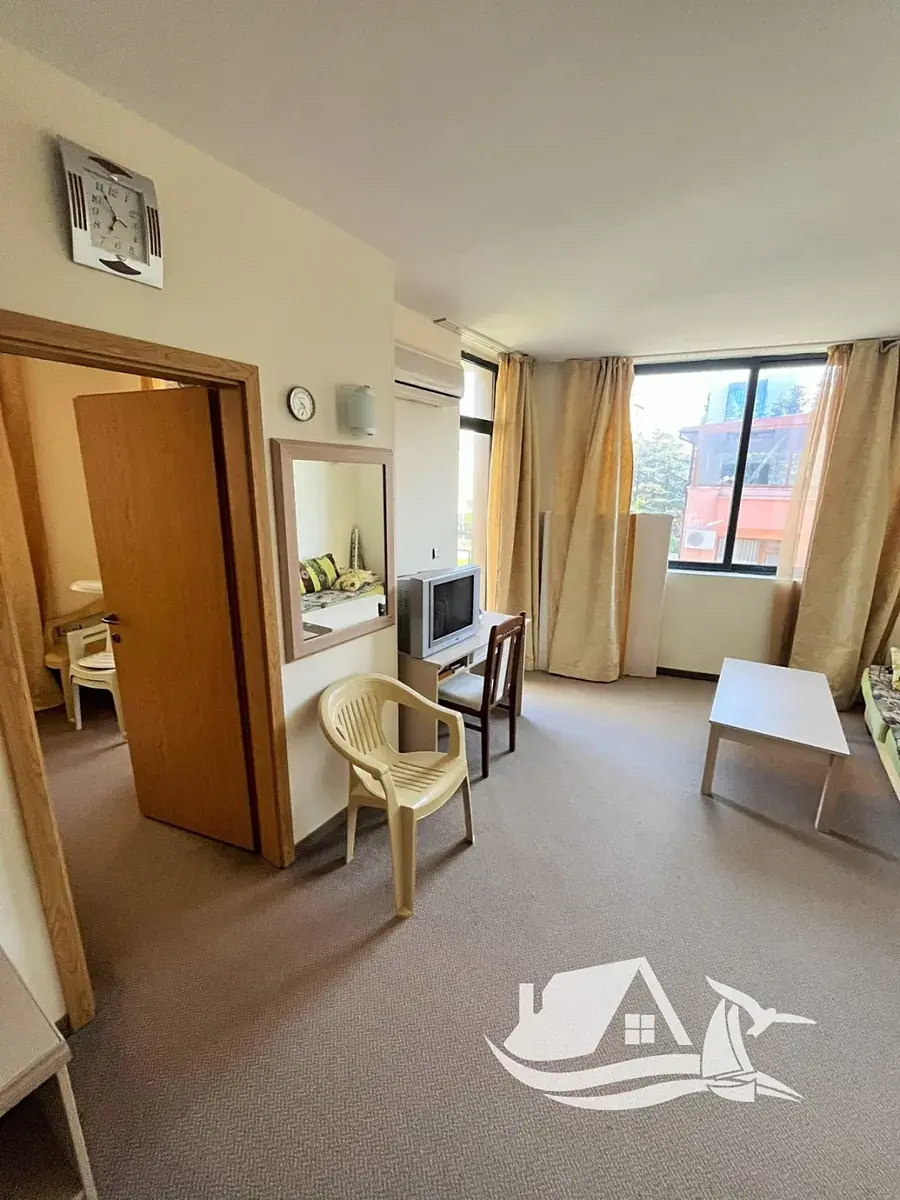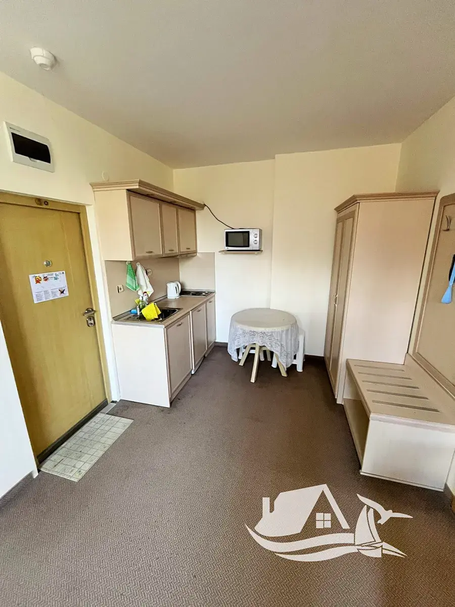 Pláž je vzdálena přibližně 500 metrů a jen pár minut chůze najdete restaurace, kavárny, bary, trhy, lékárny i celoročně otevřený supermarket Mladost. Aquapark Action je v docházkové vzdálenosti a historický Nessebar přidává lokalitě atmosféru, která z ní činí jedno z nejzajímavějších míst bulharského pobřeží.