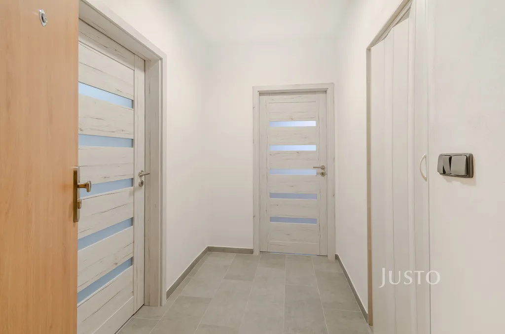 - Byt je kompletně nově vyštukovaný a vymalovaný.