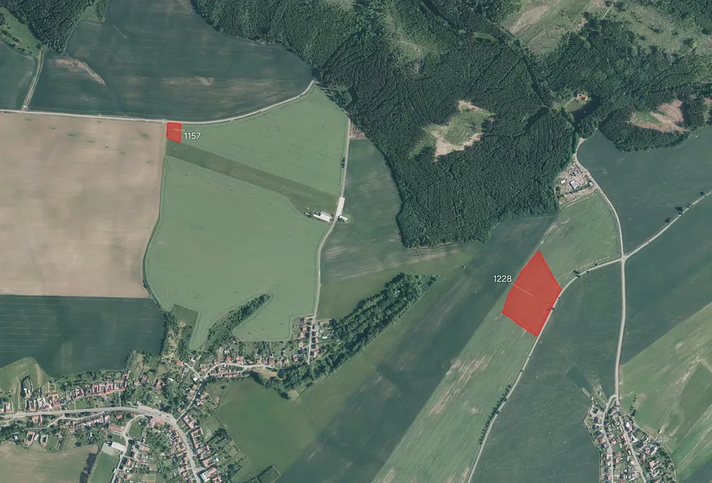 parc. č. 1228 v k.ú. Senetářov – orná půda, výměra celkem 26 266 m², k prodeji 6 566 m²