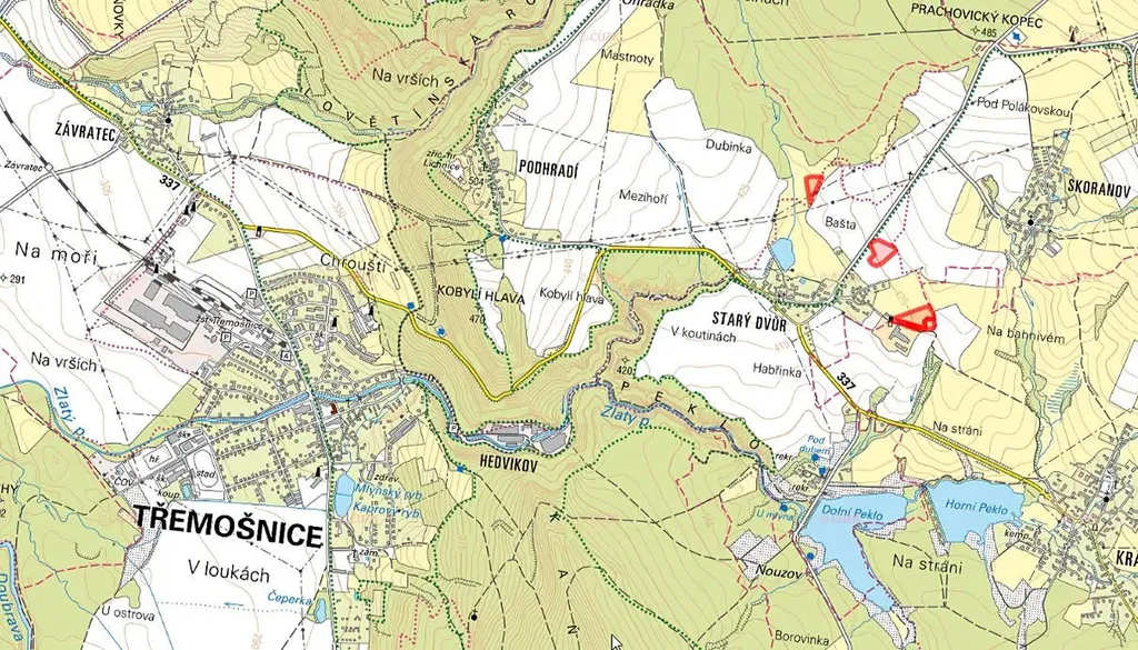 Prodáváme zemědělskou půdu v katastrálním území Starý Dvůr a Podhradí v Železných horách v okrese Chrudim. Katastrální území jsou součástí obce Třemošnice.