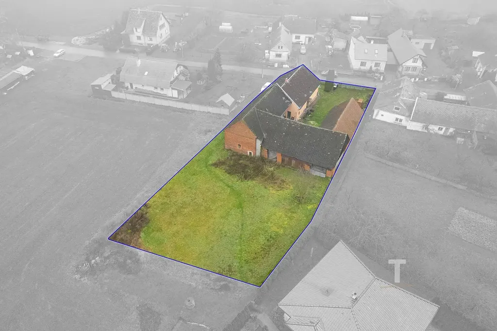Dům leží na rovinatém pozemku s celkovou výměrou 1960 m2.