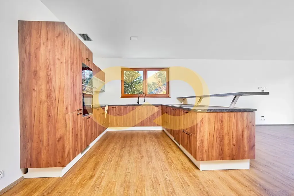 Kuchyňská linka je zařízená všemi potřebnými spotřebiči. A na vaření tu budete mít místa víc než dost.